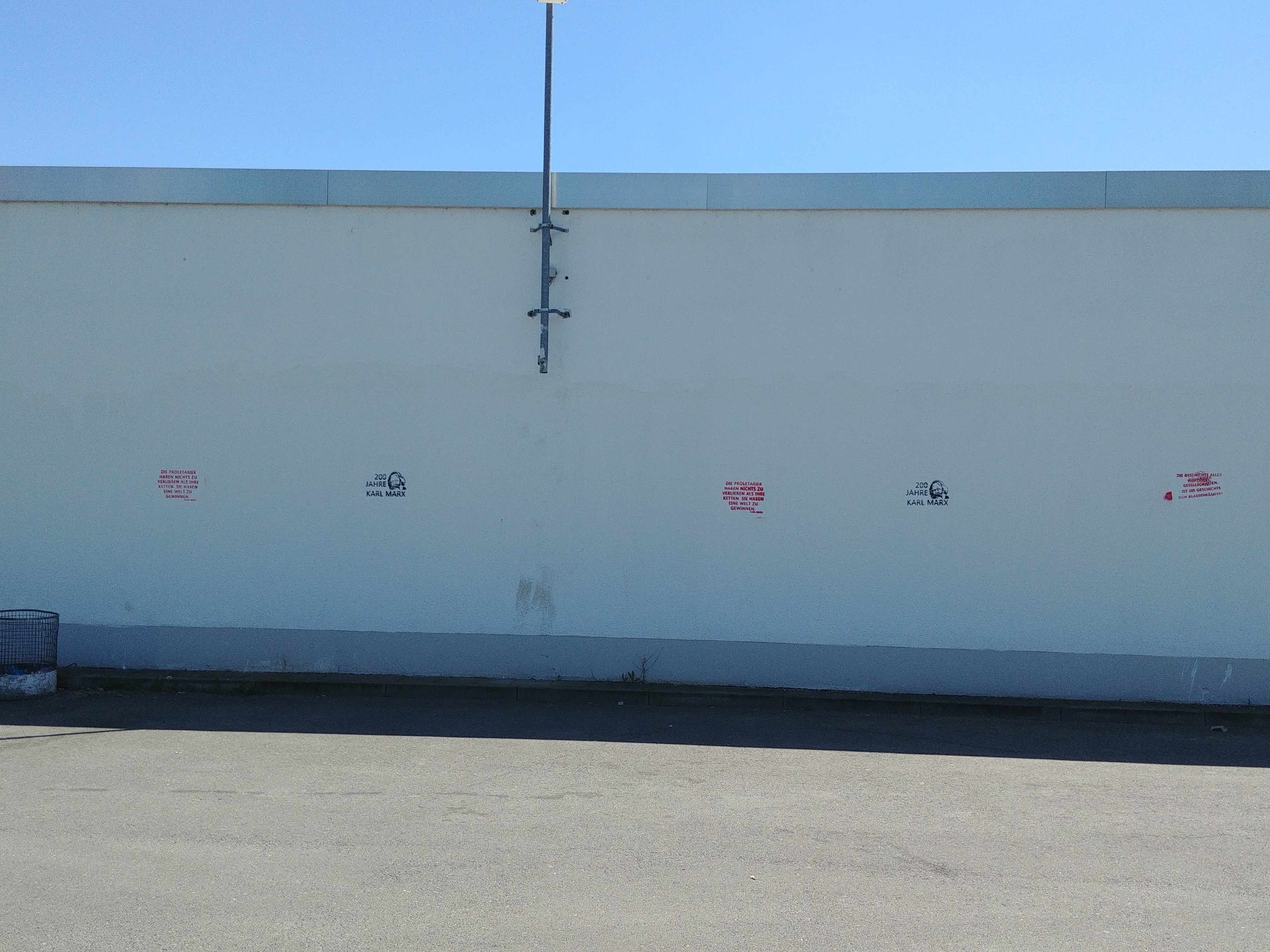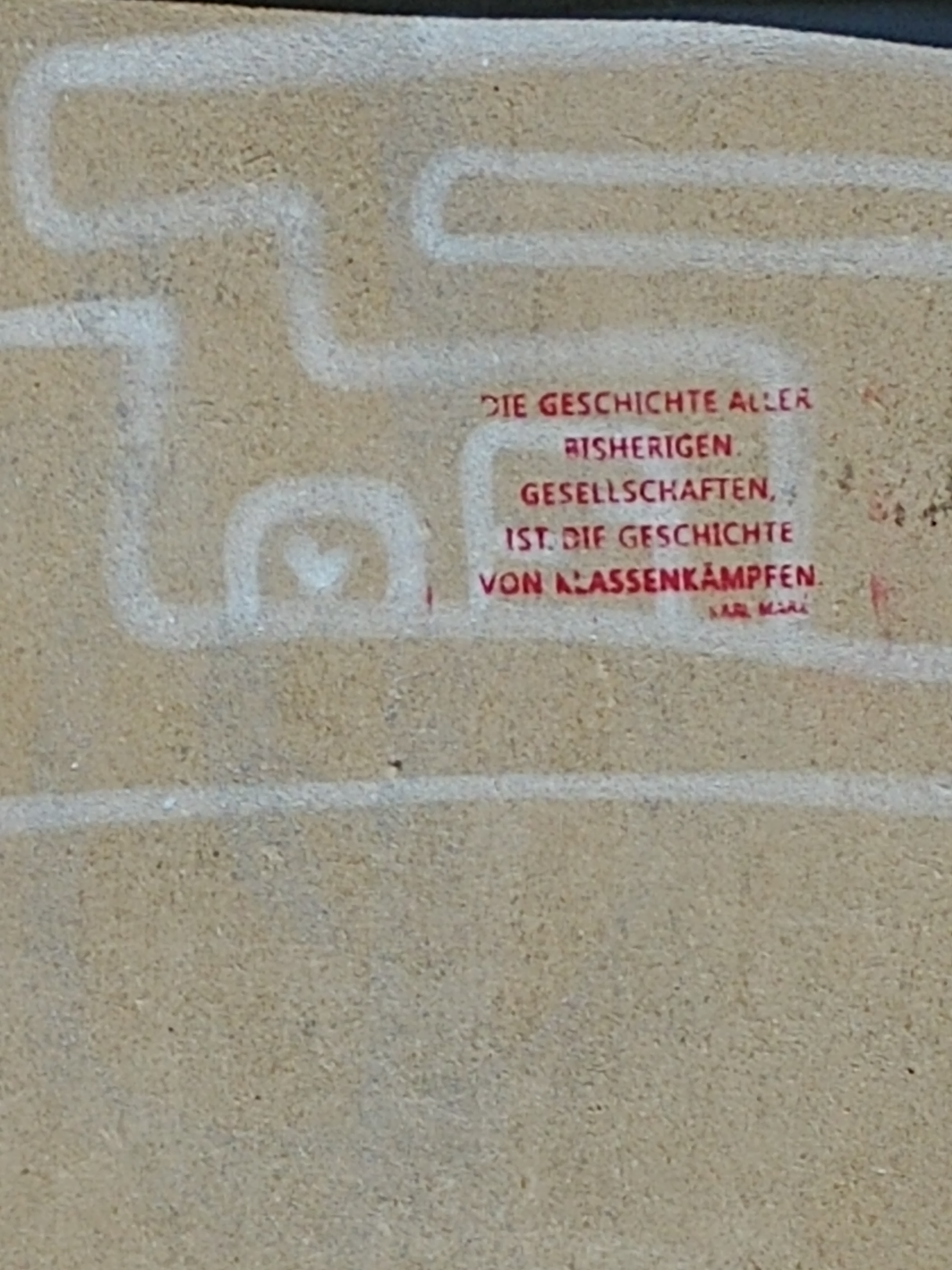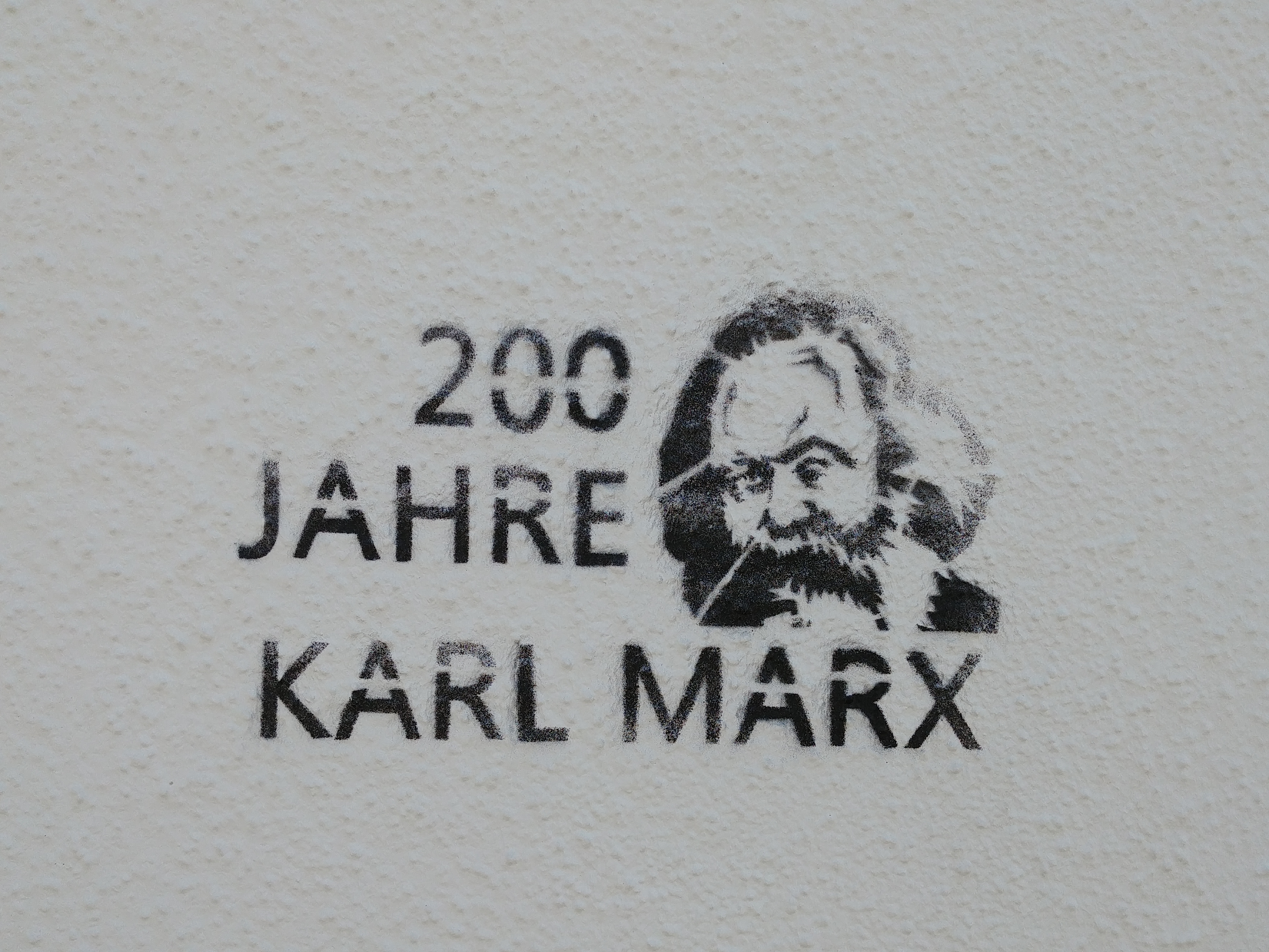 Anlässlich von Karl Marx‘ 200. Geburtstag sind in Cottbus einige Dutzend Sprayereien mit den bekanntesten seiner Zitate in einem Arbeiterstadtteil aufgetaucht.