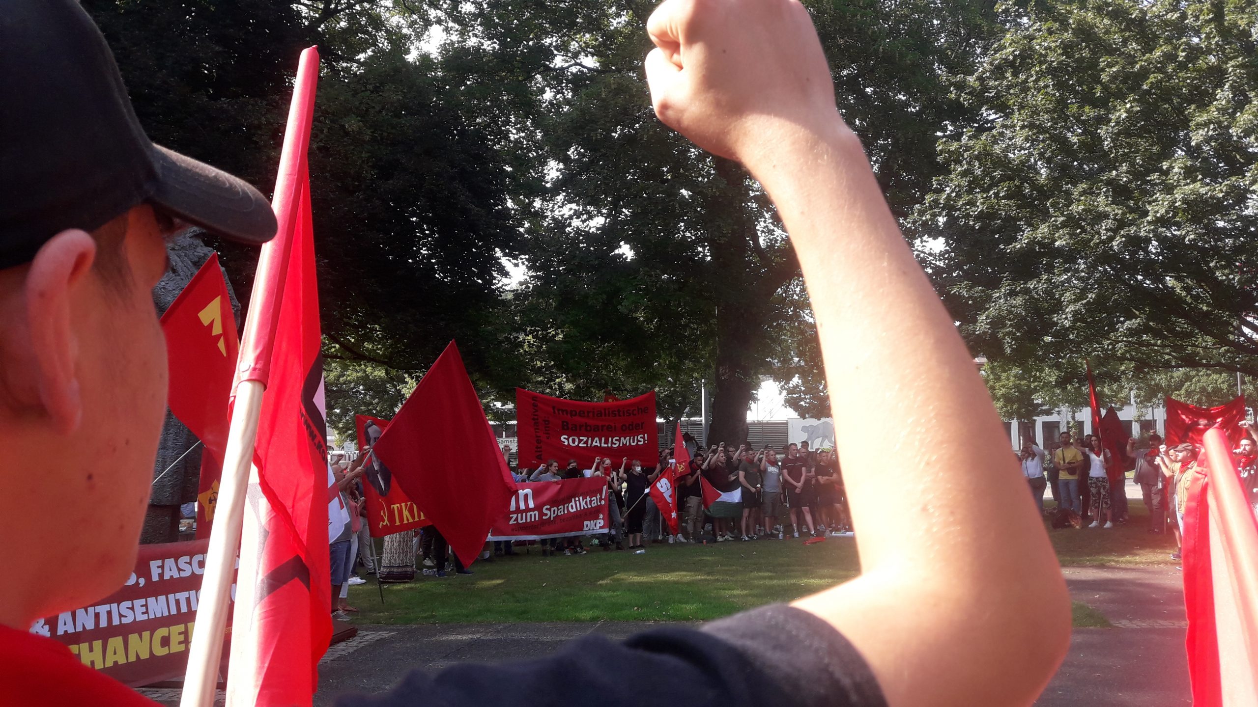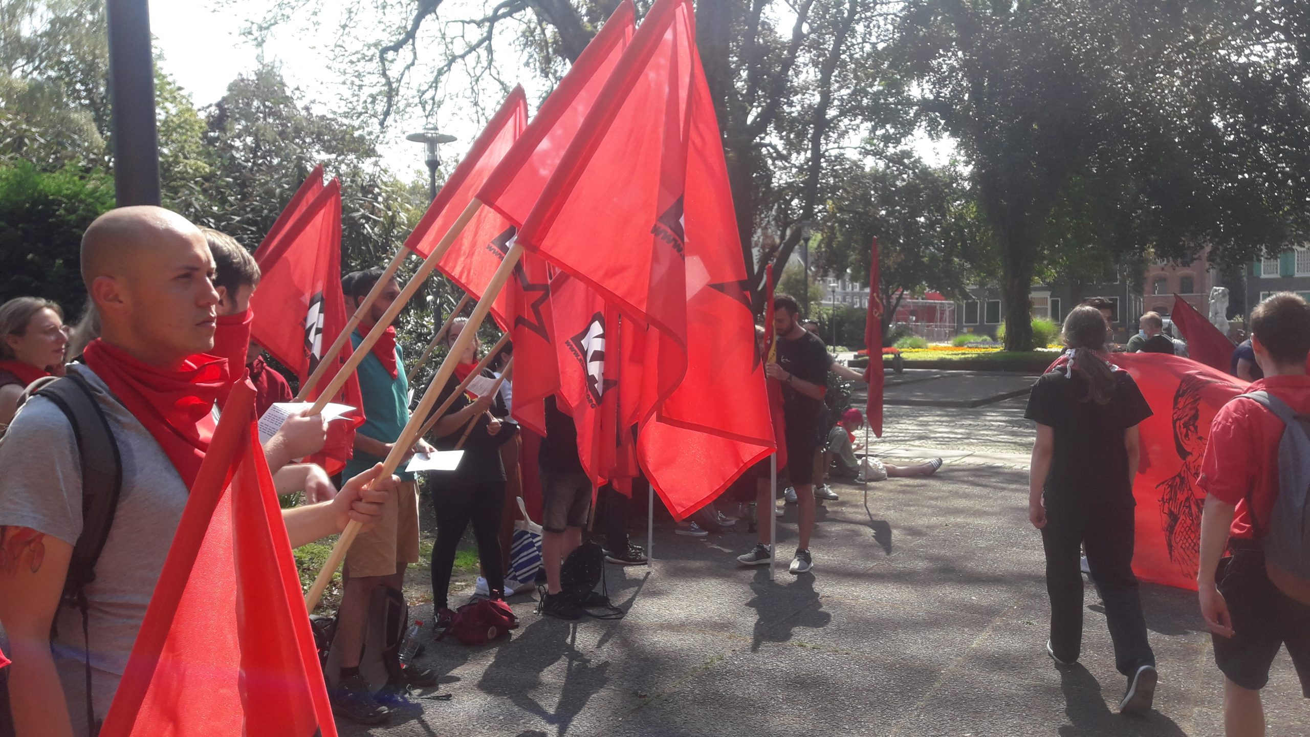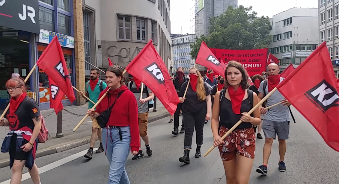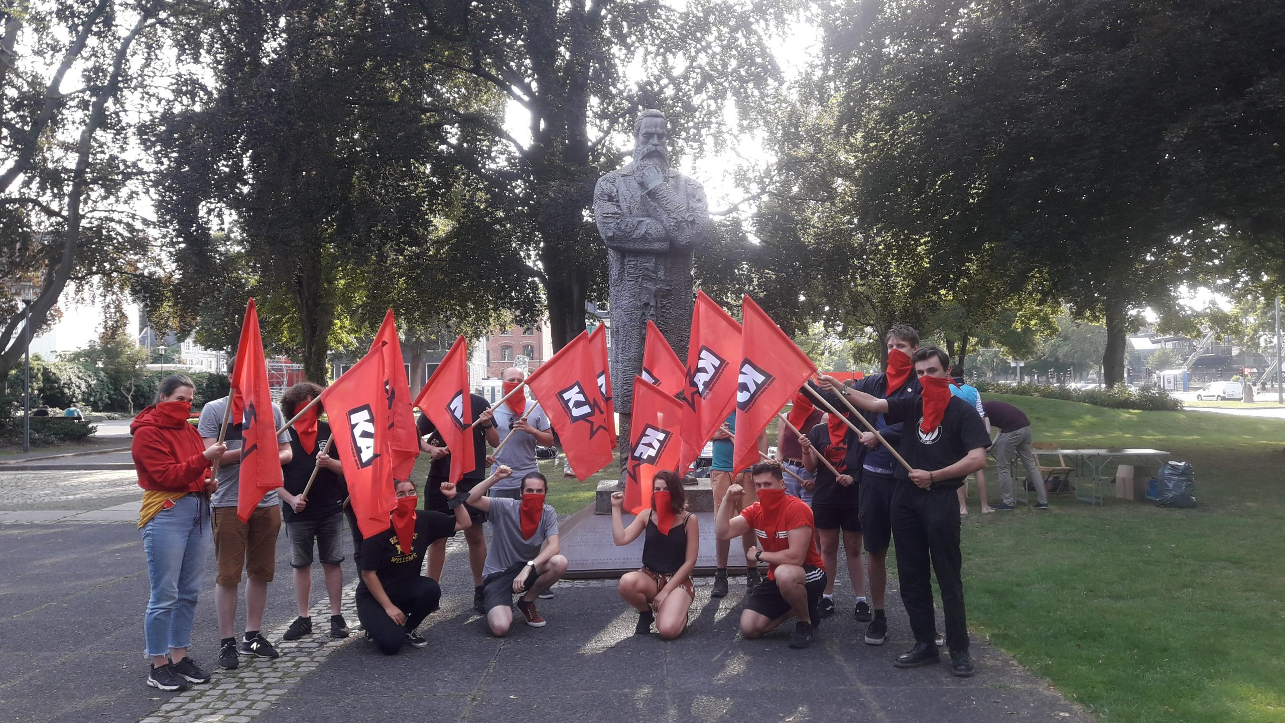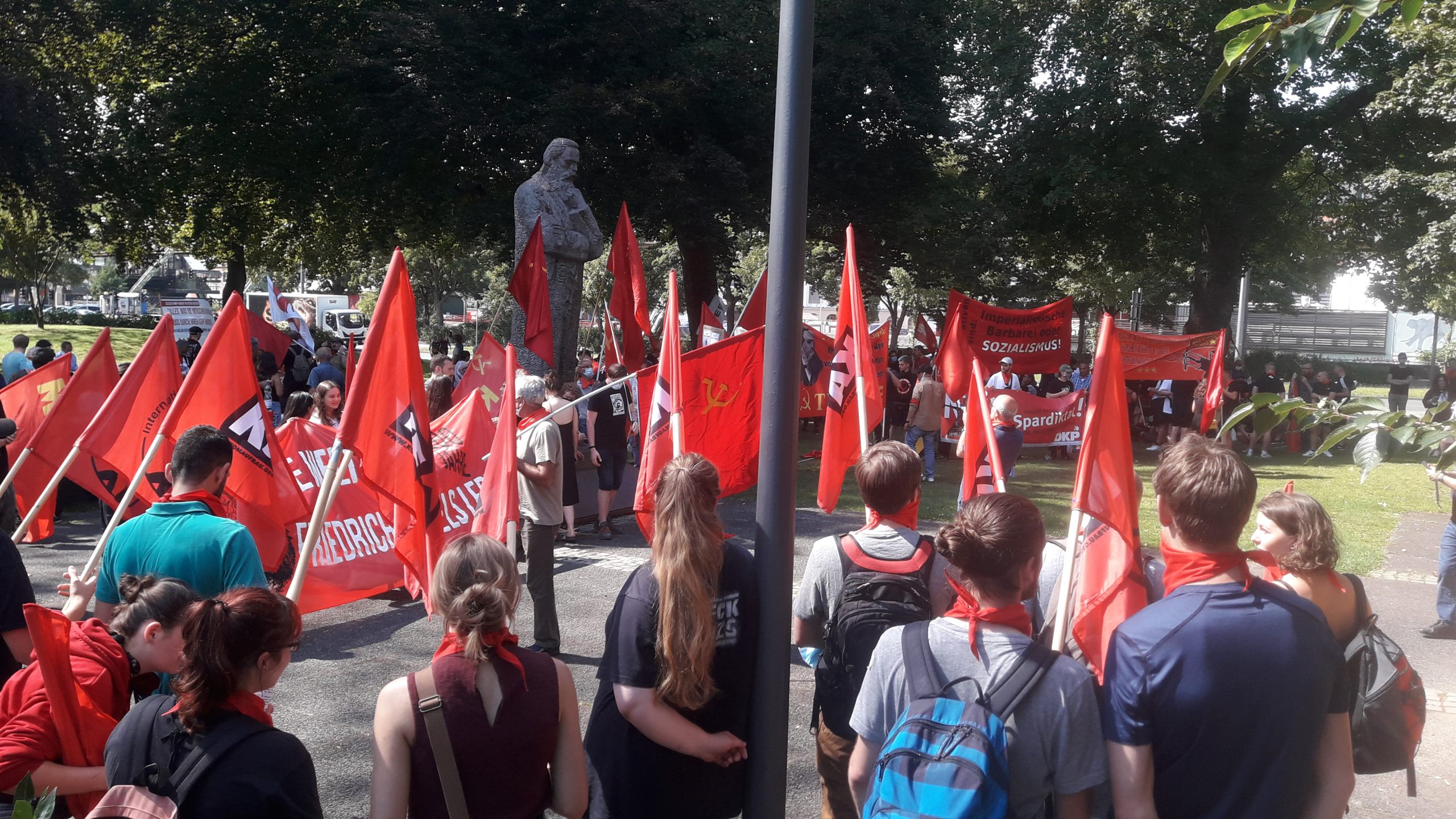 Auch wir haben uns aktiv an den Vorbereitungen des Engels-Bündnis beteiligt und mit einem Block an der Demonstration teilgenommen. Die Demonstration begann am Hauptbahnhof und war über die gesamte Strecke lautstark und zeigte mit ihren roten Fahnen, dass es nach wie vor eine sozialistische Bewegung hierzulande gibt.